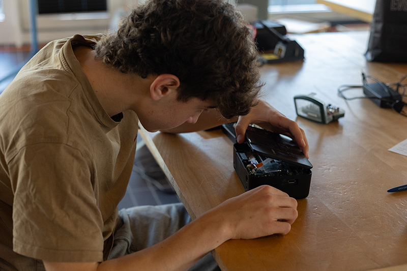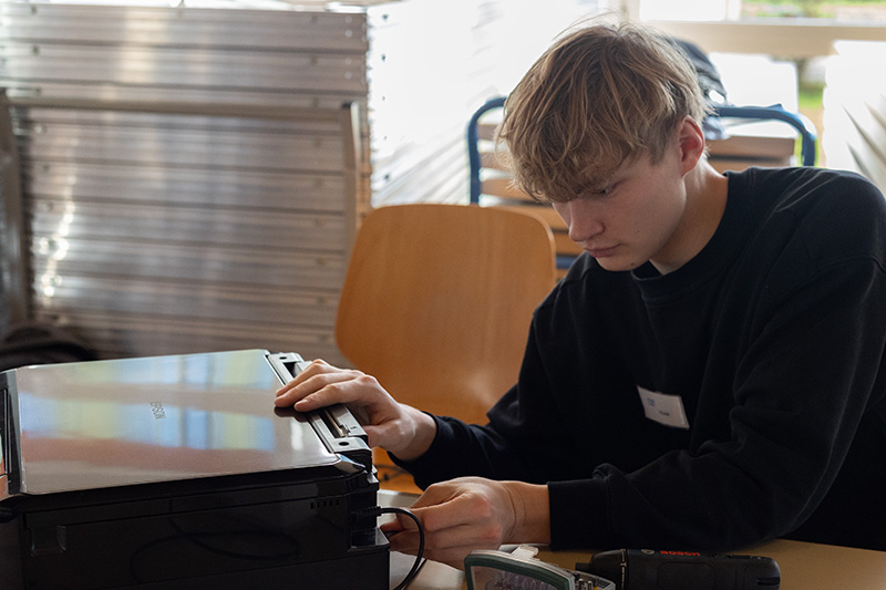 Marco und Julius halfen im Informatik-Bereich und reparierten Laptops, Handys und Drucker. So mussten die Geräte nicht entsorgt werden, und die Besitzerinnen und Besitzer mussten keine neuen anschaffen.