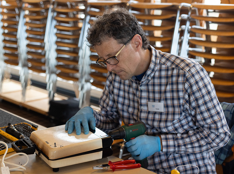 Verschiedene Tische boten Unterstützung in unterschiedlichen Bereichen an: Informatik/ICT, Elektronik, Nähen und Bücherreparatur. Ehrenamtliche Fachpersonen und freiwillige Helferinnen und Helfer nahmen sich Zeit, um defekte Gegenstände zu begutachten und möglichst zu reparieren. Von Schuhen über Waffeleisen bis zu Kameras, es gab kaum etwas, das nicht versucht wurde zu retten.